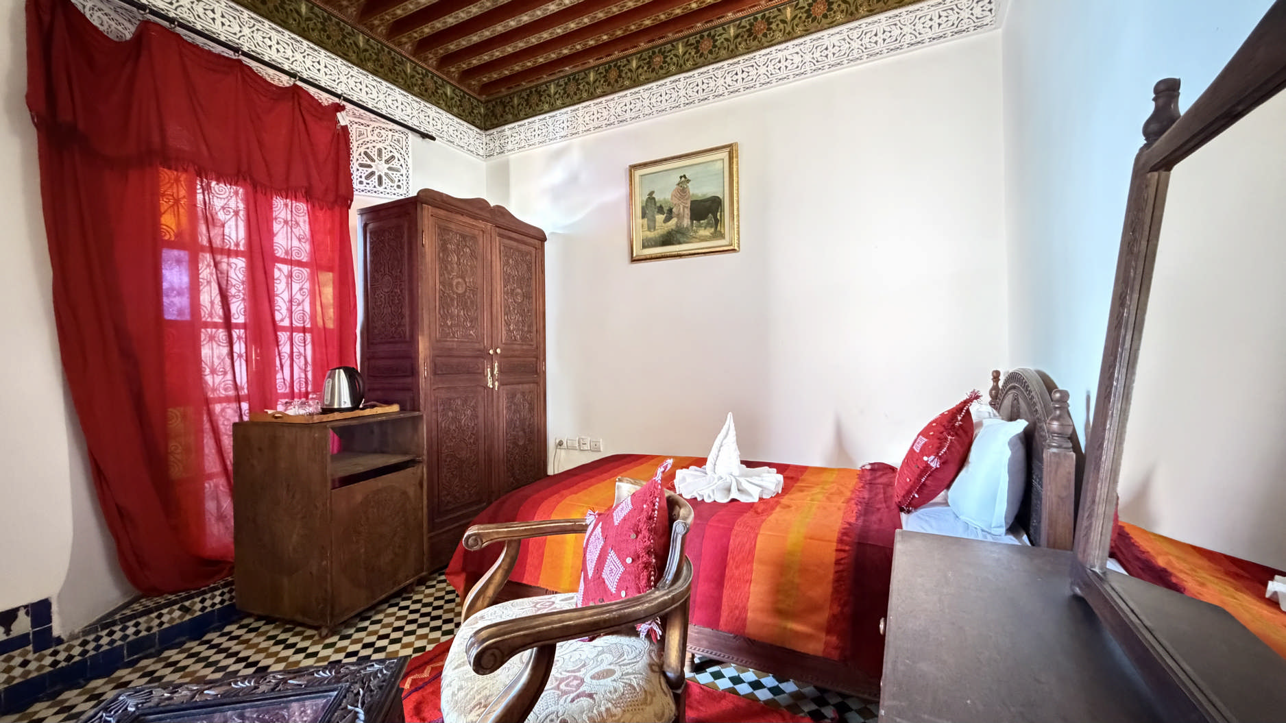 Ses plafonds travaillés, ses lanternes en cuivre et ses couleurs chaleureuses racontent une histoire d’élégance et de savoir-faire ancestral.